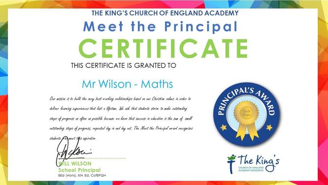 Our Meet the Headteacher reward is awarded to those students who complete work that displays outstanding steps of progress have been made. The nominations for the reward are made by teaching staff who have marked completed work and judge it to be 'Outstanding'. Students are then invited to meet the Head Teacher. Here, they discuss the work they have completed and showcase their talents, whilst enjoying a cup of hot chocolate and biscuits. As well as this, students are rewarded with 75 positive behaviours points and a letter home to parents/carers to celebrate their child's success.