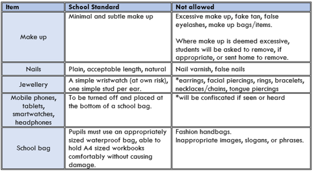 The school reserves the right to make a judgement on the suitability of pupils’ hair and appearance.