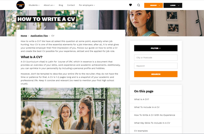 https://www.studentjob.co.uk/application-tips/cv - Useful information on how to structure and write a CV.