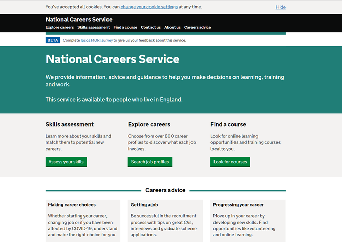 https://nationalcareersservice.direct.gov.uk – Use this link to access information on job profiles, allowing you to explore your career ideas.