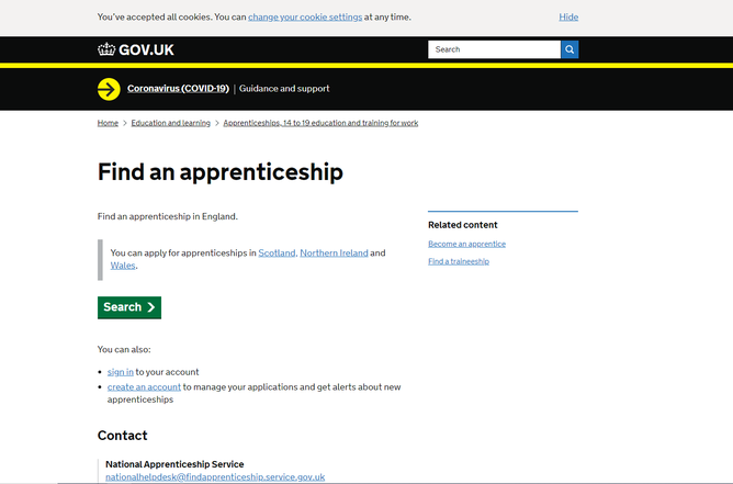 https://www.gov.uk/apply-apprenticeship - Use this link to find out further information about apprenticeships and the apprenticeships which are available within your local area.